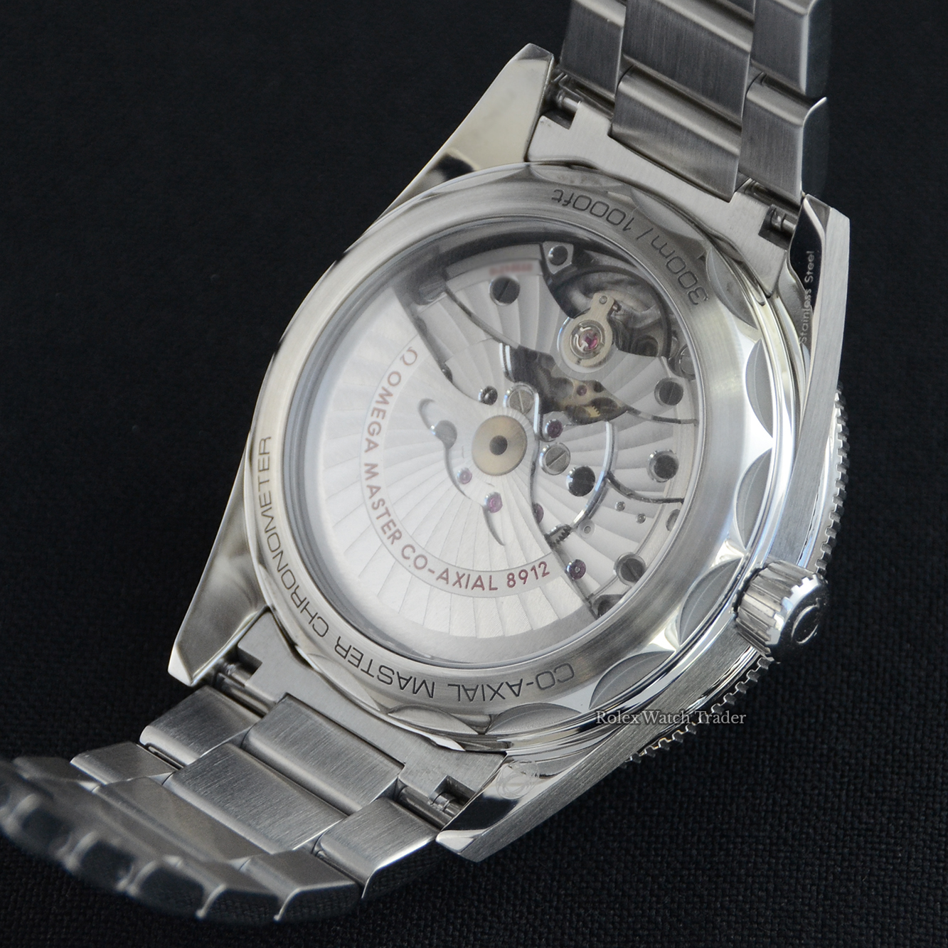 Presented on a full retail length ergonomic stainless steel bracelet, this timepiece includes a transparent sapphire crystal caseback, enabling a clear view of the OMEGA Co-Axial Master Chronometer Calibre 8912.