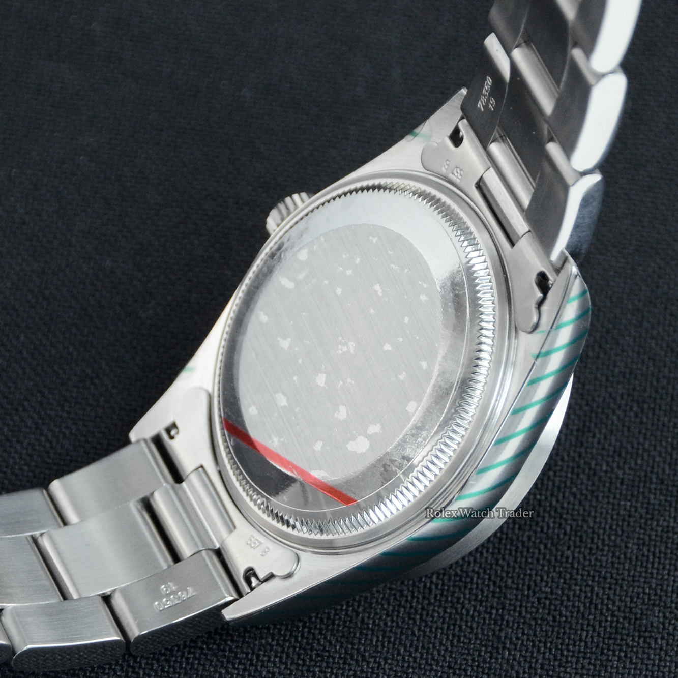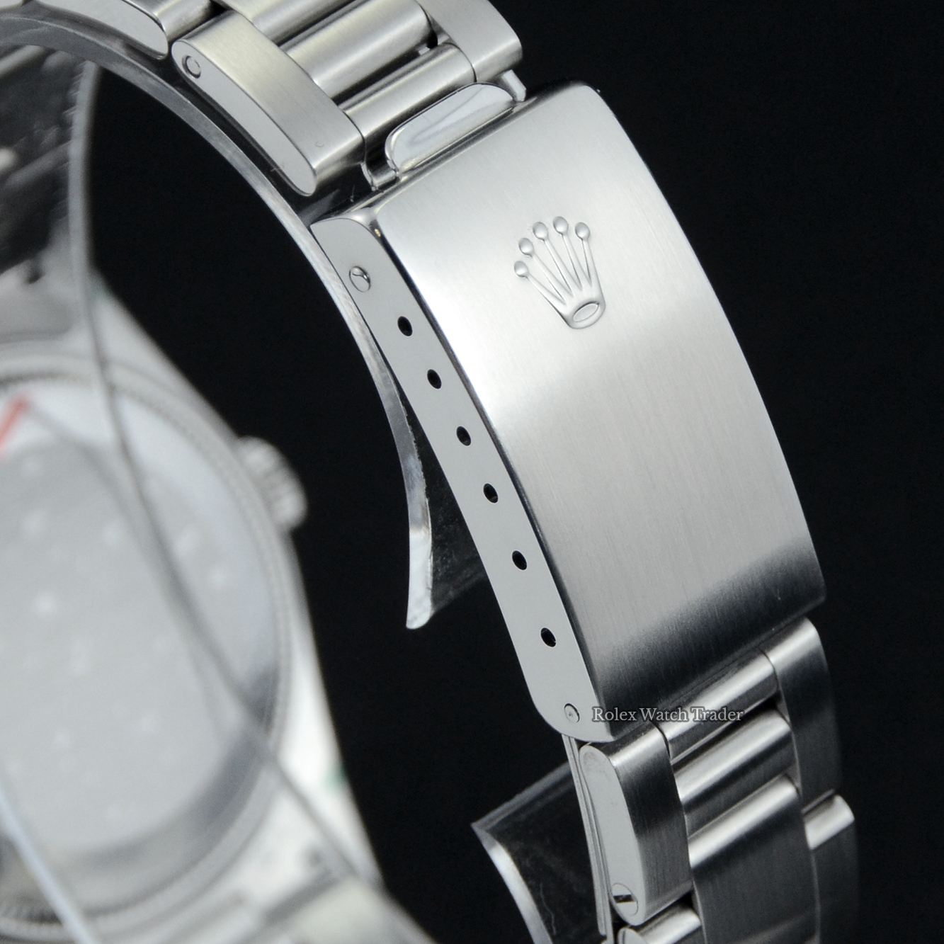 This Rolex Air King 14010M benefits from the remainder of the Rolex service warranty which expires in July 2025. In addition like all our watches it is also covered by a one year warranty valid from the point of purchase covered by us.