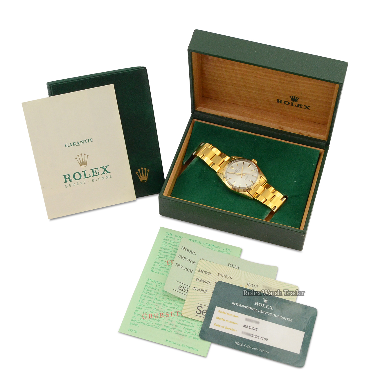 This Rolex Air King 5520 benefits by a two-year warranty covered by us from the point of purchase.