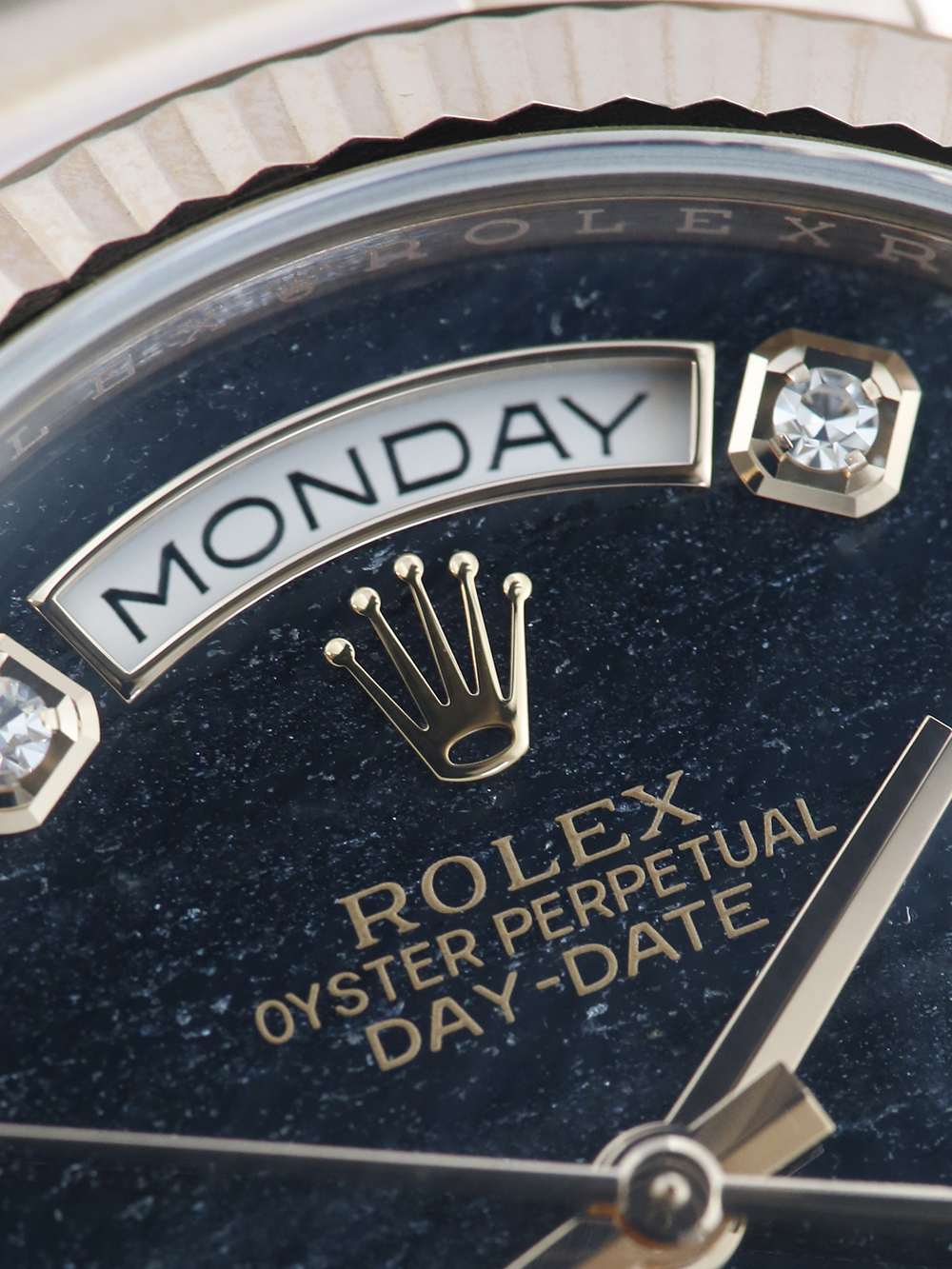 This Rolex Day-Date 36 118235 benefits from a two year warranty covered by us from the point of purchase.