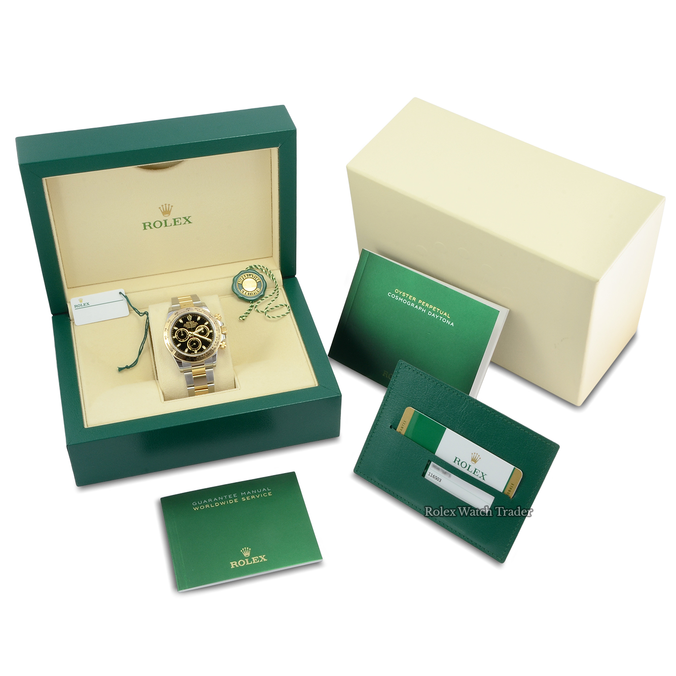 This Rolex Daytona 116503 benefits from the remainder of the 5 year manufacturer's warranty which is valid until November 2024. In addition like all our watches it is also covered by a one year Rolex Watch Trader warranty valid from the point of purchase.