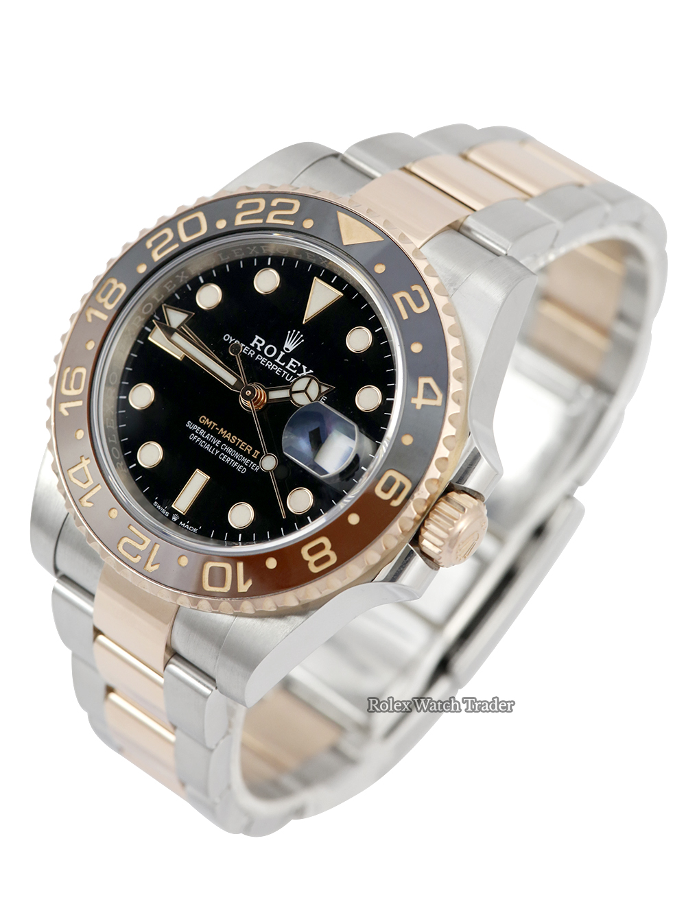 We are delighted to offer for sale this preowned in pristine condition a chronometer rated automatic movement Rolex GMT-Master II model reference 126711CHNR. This stunning watch features a 40mm bimetal stainless steel and rose gold, housing a black dial with luminous rose gold outlined indexes. The dial is surrounded by a rotating rose gold bezel with a black & brown "Root Beer" ceramic 24 hour GMT bezel insert. Presented on a full retail length stainless steel and everose gold Rolex Oyster bracelet with satin-finished outer links and polished finish centre links, completed by a folding Oysterclasp.