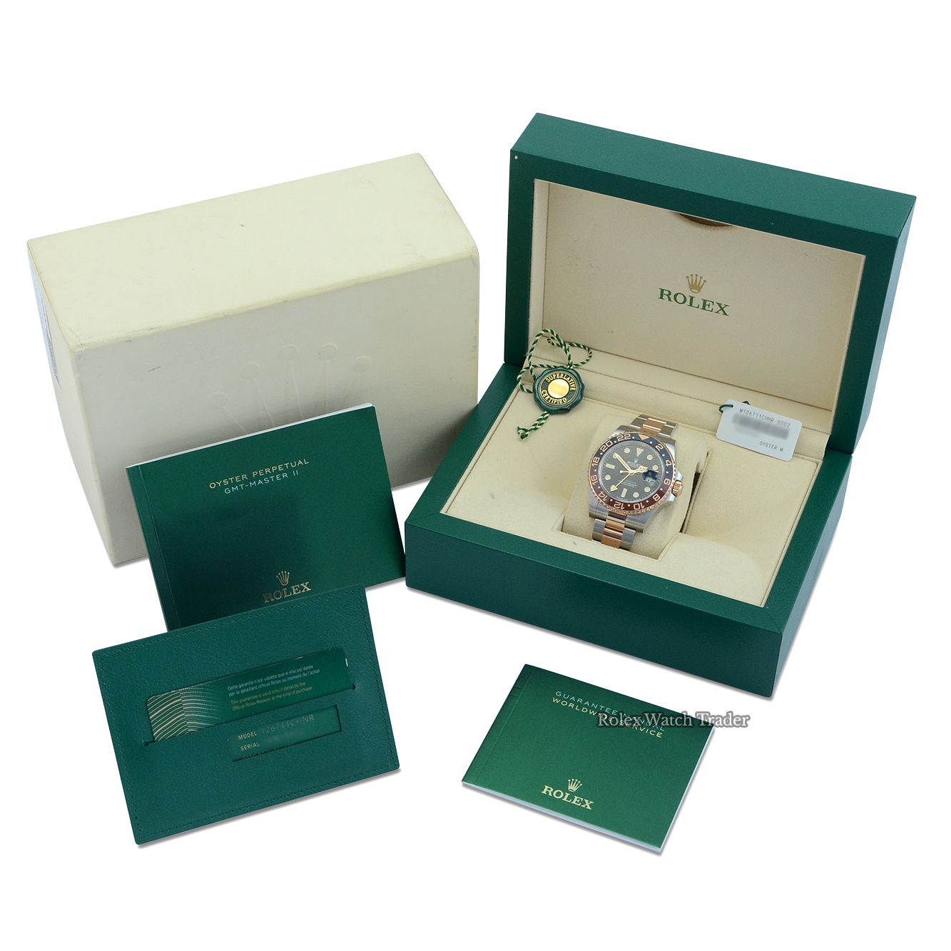 This Rolex GMT-Master II 126711CHNR "Root Beer" benefits from the remaining balance of the Rolex 5 year warranty which expires in September 2024. In addition, all our watches are covered by a 1 year warranty covered by us valid from the point of sale.