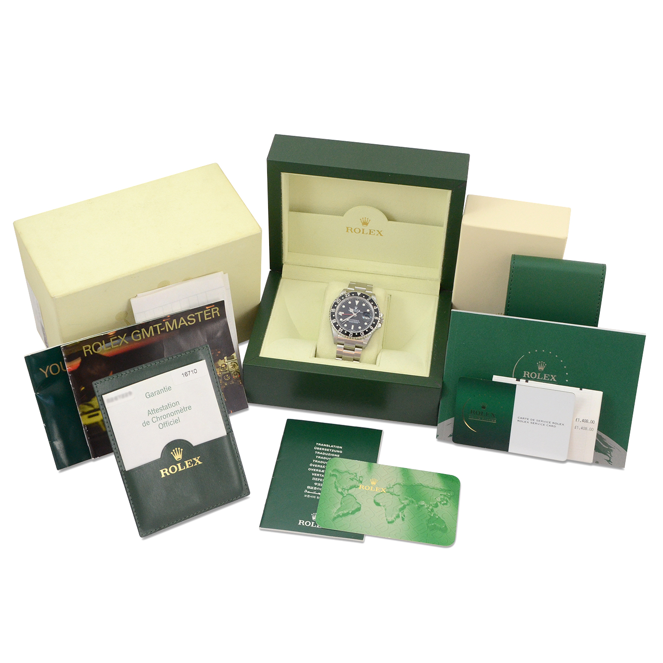 This Rolex GMT-Master II 16710 benefits from the remainder of the Rolex service warranty which expires in March 2027 and two year warranty with ourselves valid from the point of purchase.