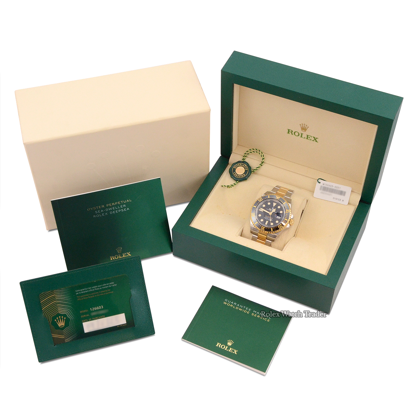 This Rolex Sea-Dweller 126603 benefits from the remainder of the 5-year manufacturer's warranty which is valid until January 2028. In addition like all our watches it is also covered by a two-year warranty covered by us from the point of purchase.