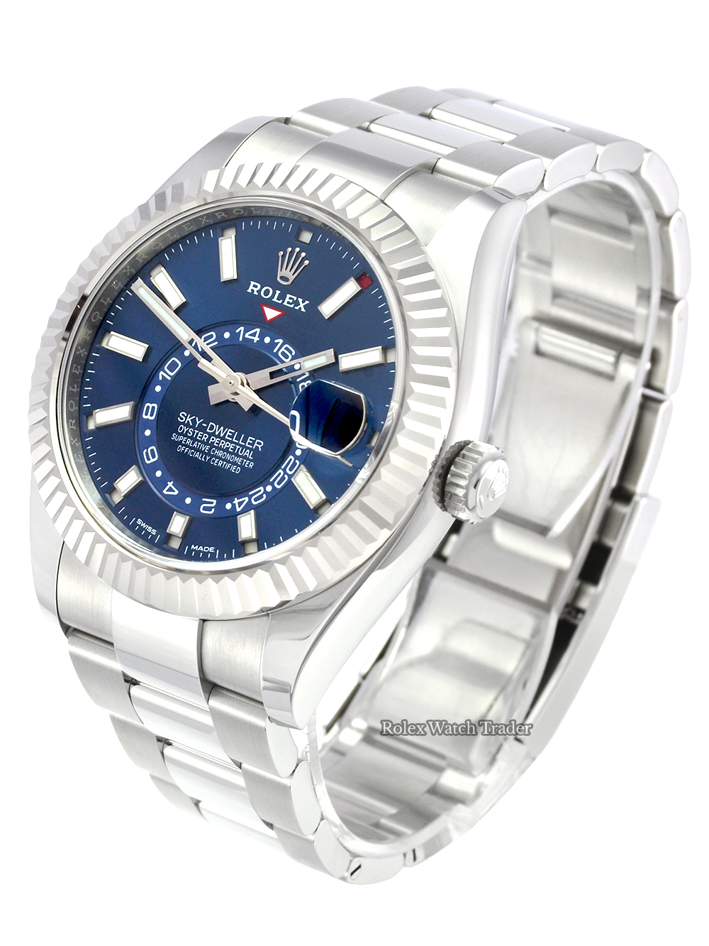 Rolex Watch Trader are pleased to offer for sale this very hard to find Rolex Sky-Dweller with the sought after blue baton dial.
