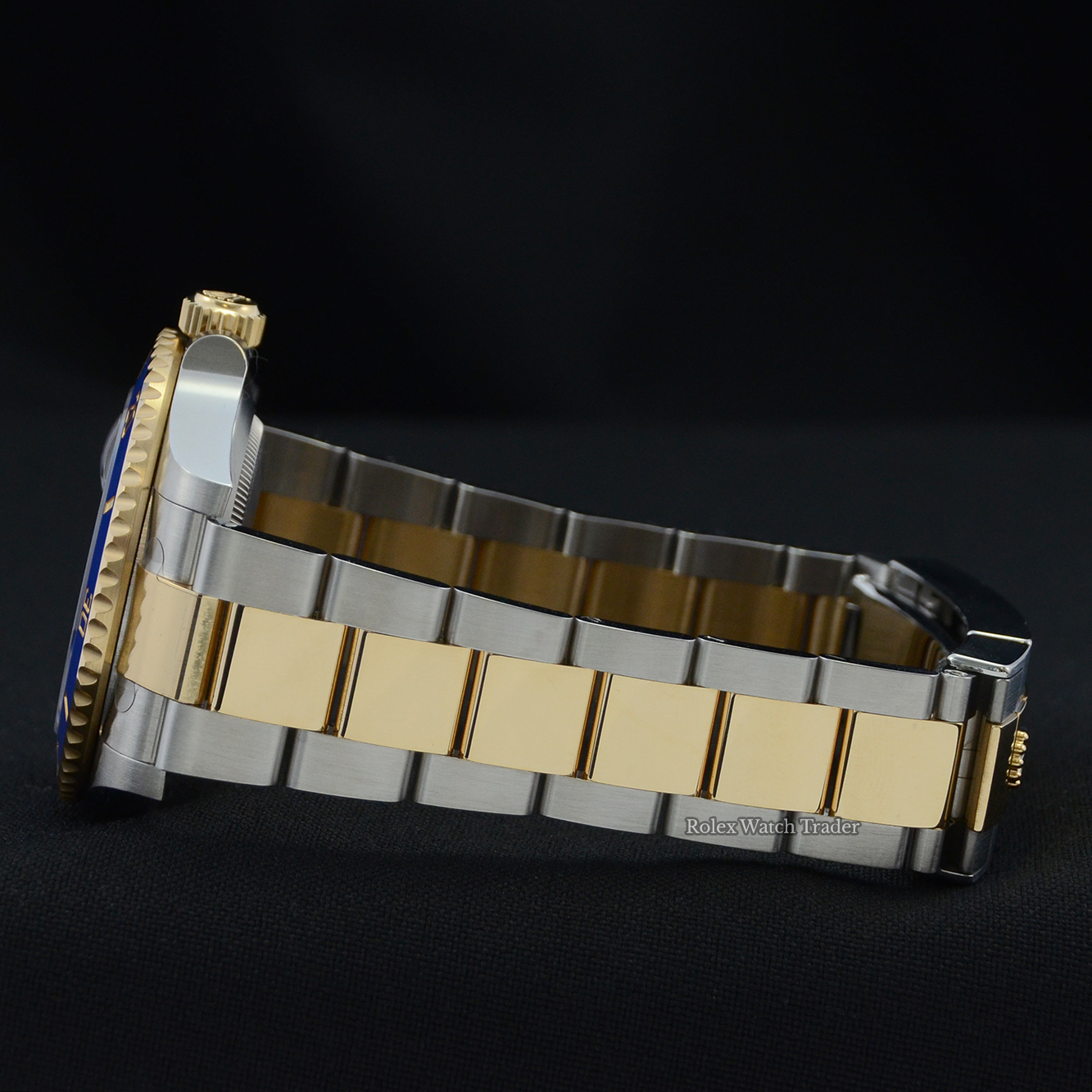 A brand new unworn with some factory stickers, one previous owner, superlative chronometer certified automatic movement Rolex Submariner Date, model reference 126613LB. Featuring a 41mm bimetal stainless steel and yellow gold case, housing a sunburst blue baton dial with gold trim luminous hour markers and a date aperture at 3 o'clock with an external cyclops. The dial is surrounded by a blue 60 minute uni-directional rotating ceramic bezel. All presented on a full retail length stainless steel and yellow gold Rolex Oyster bracelet with an Oysterlock secure folding clasp.