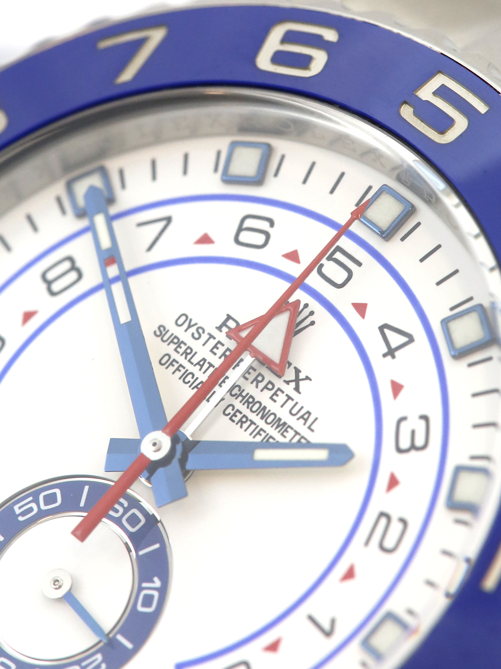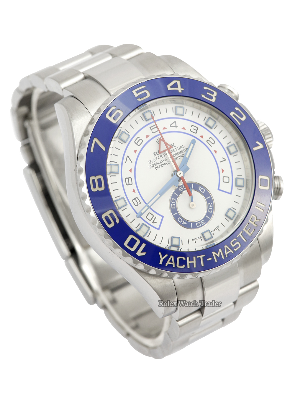 We are pleased to offer for sale this previously owned Rolex Yacht-Master II which is presented in excellent condition model reference 116680. Featuring a 44mm stainless steel case, housing a white baton dial with a regatta chronograph function, small seconds sub-dial and a red chronograph hand. The dial is surrounded by a 10 minute countdown blue ceramic bezel. All presented on a stainless steel Rolex Oyster bracelet with a secure Oysterlock folding clasp.