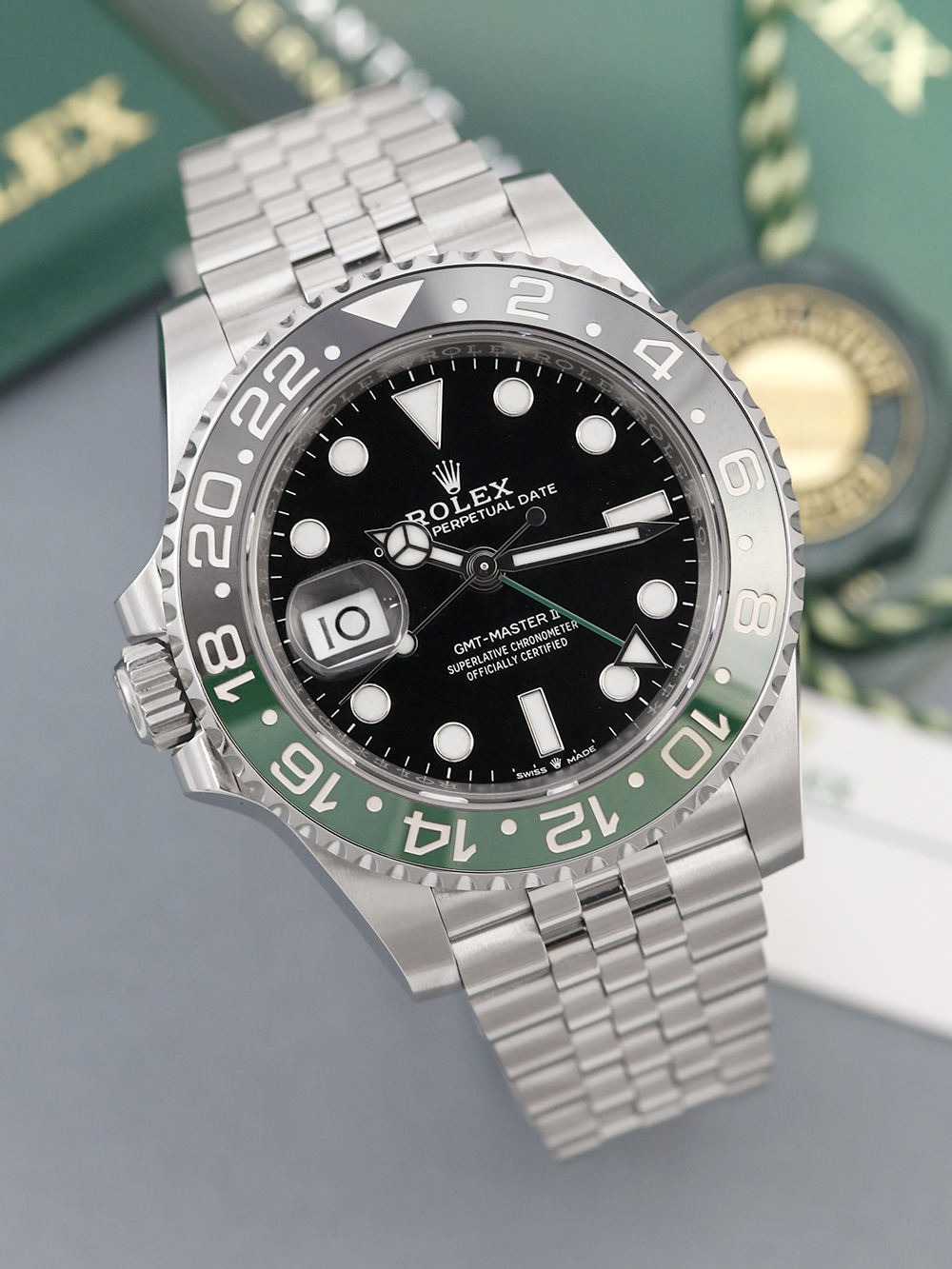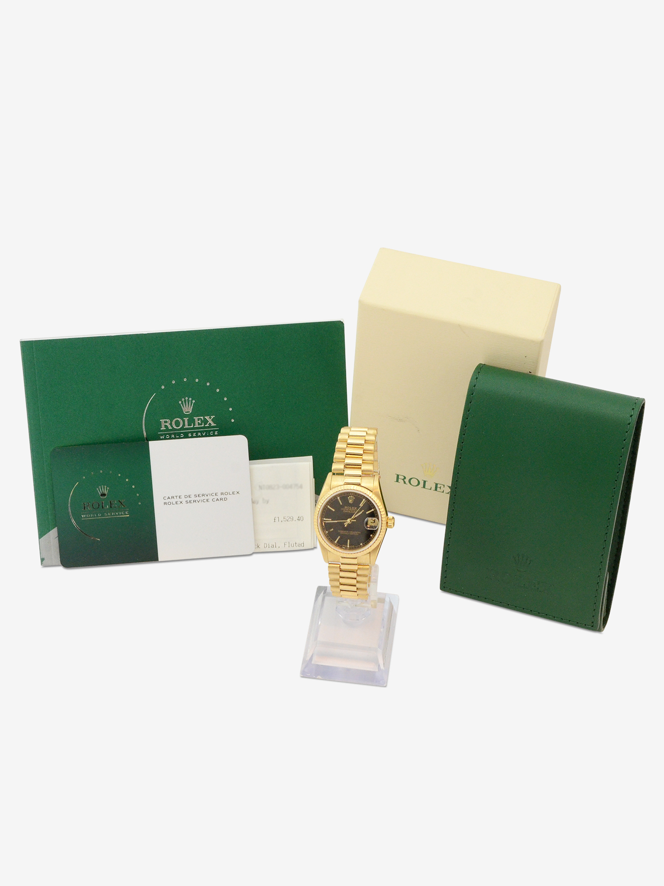 As shown in the detailed images this watch is supplied with the original Rolex service box, the original Rolex service pouch, the original Rolex service manual, the original Rolex new style digital service warranty card and the original Rolex service receipt.
