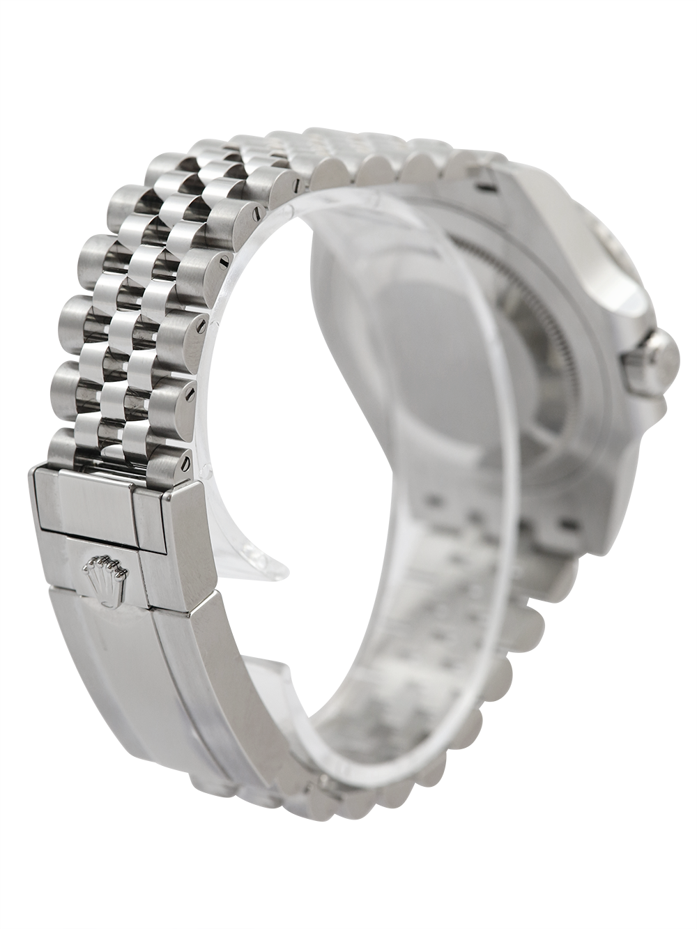 A pre-owned in pristine condition superlative chronometer-certified, automatic movement Rolex GMT-Master II model reference 126710BLRO. Featuring a 40mm stainless steel case, housing a black dial with luminous hour markers, a red GMT hand, and a date aperture at 3 o’clock. The dial is surrounded by a rotating stainless steel bezel with a ceramic red and blue GMT “Pepsi” bezel insert. Supplied on a full retail length Rolex Jubilee bracelet, completed by an Oysterlock folding clasp.