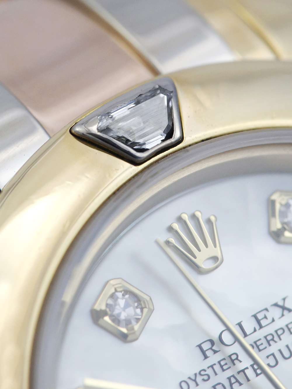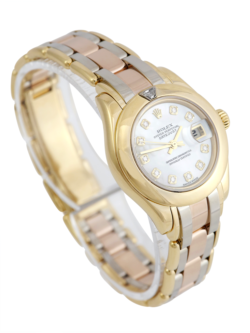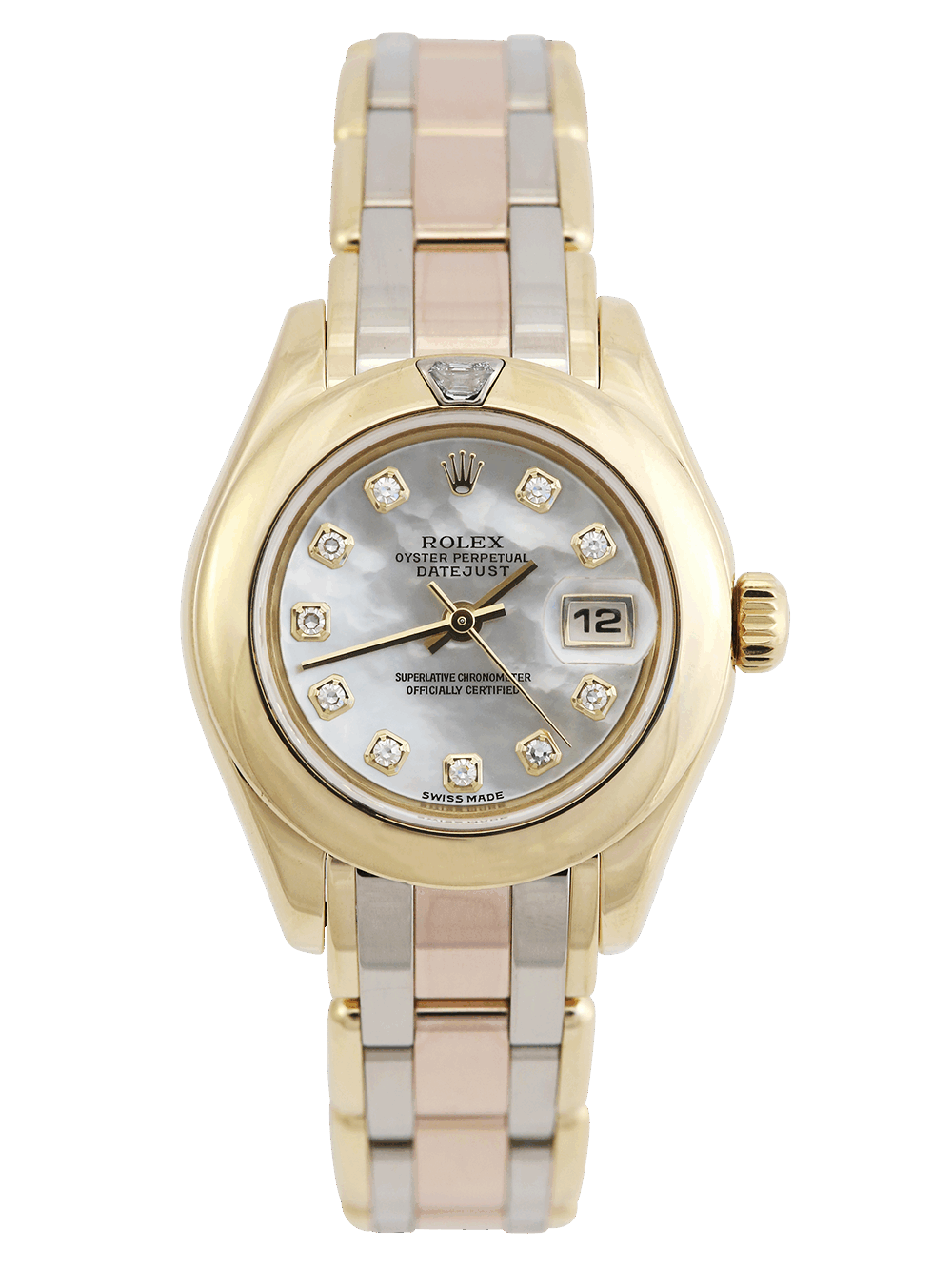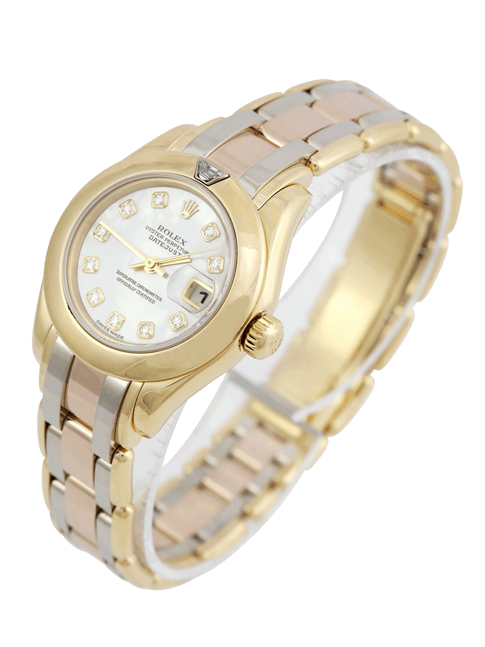 Rolex Lady-Datejust Pearlmaster 29mm | REF. 80328 | Tridor Three-Colour Gold | White Mother of Pearl Diamond Dial