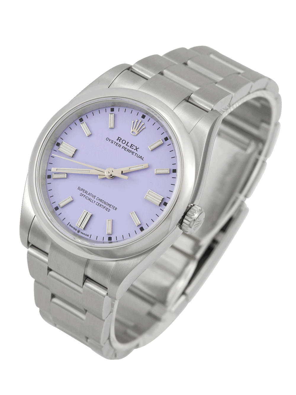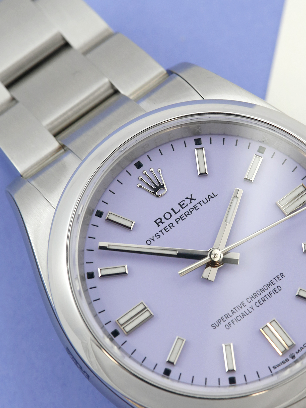 We are delighted to offer one of the latest release from the 2025 Rolex line up. A very desirable Rolex Oyster Perpetual 36 with the lavender dial.