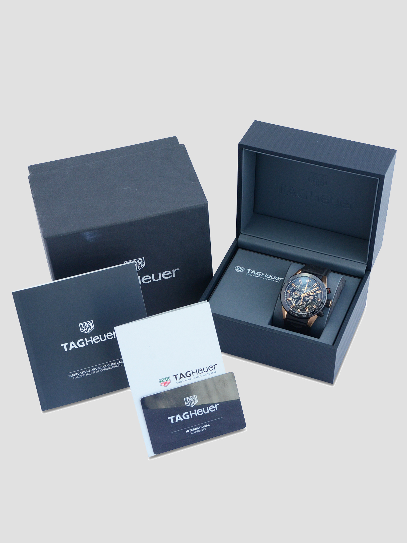 As shown in the images this particular watch is supplied with both of the inner and outer Tag Heuer boxes, the Tag Heuer manual and the Tag Heuer international warranty card dated May 2021 when first supplied new in the UK.